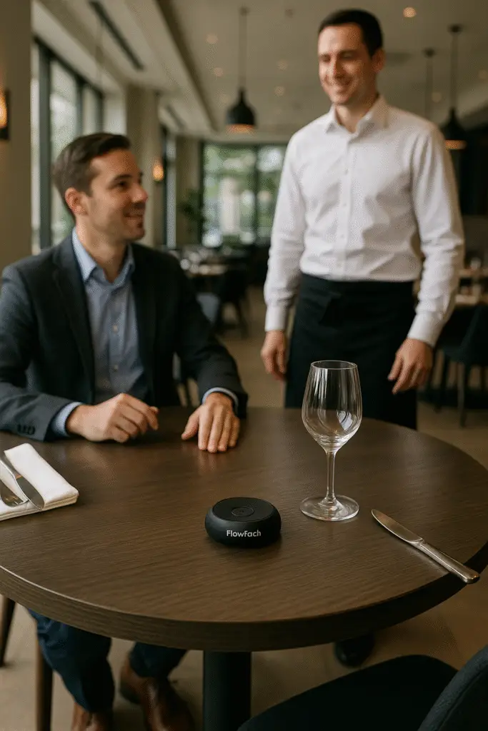 Camareo es un innovador sistema diseñado para mejorar la experiencia en restaurantes y bares mediante la implementación de un dispositivo sencillo con botones, que permite a los clientes solicitar la atención del camarero o pedir la cuenta de manera rápida y eficiente. Este dispositivo se coloca en cada mesa y, con solo pulsar un botón, el cliente puede notificar sus necesidades al personal de servicio sin tener que esperar a ser visto o llamar la atención manualmente.